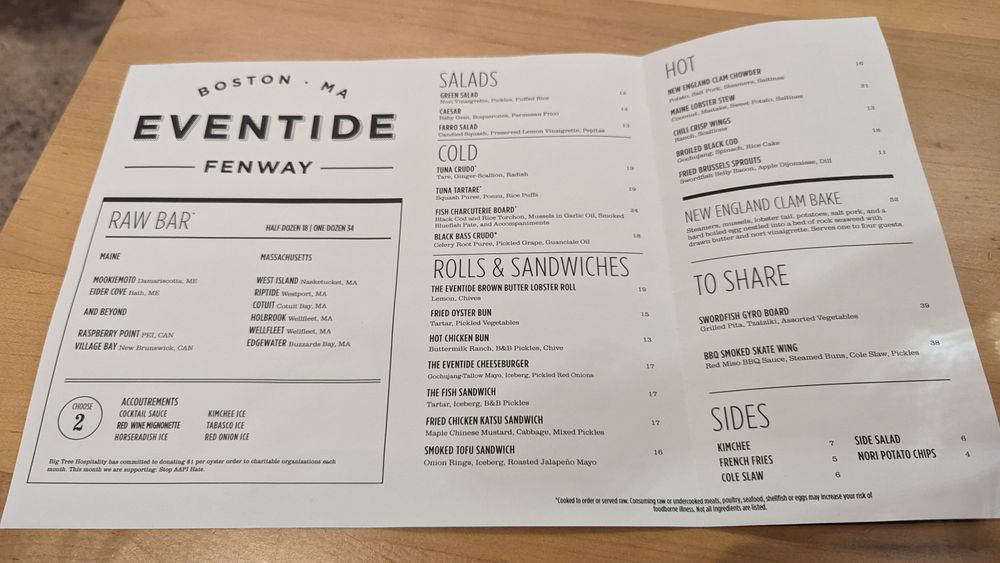 Introducing Eventide - Fenway, a seafood hotspot located in Boston. This trendy establishment offers a wide array of menu options, including fresh oysters, lobster rolls, clam chowder, and fish and chips. Customers rave about the generous portions and fresh flavors of their dishes. The modern and relaxed ambiance, combined with attentive service, enhances the overall dining experience. While some dishes may need slight improvements, Eventide - Fenway remains a solid choice for seafood lovers in Fenway. Be sure to try their signature dishes like the lobster roll and oysters for a truly memorable dining experience. With options for brunch, lunch, and dinner, this restaurant is perfect for any occasion. Don't miss out on the opportunity to indulge in delicious seafood at Eventide - Fenway.